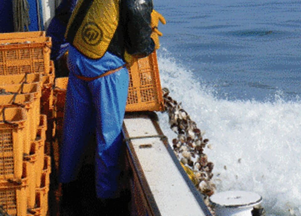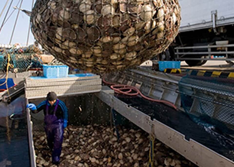 Bring harvested scallop back to shore for further processing and distribution.