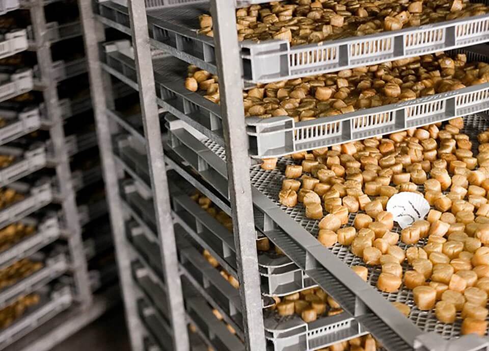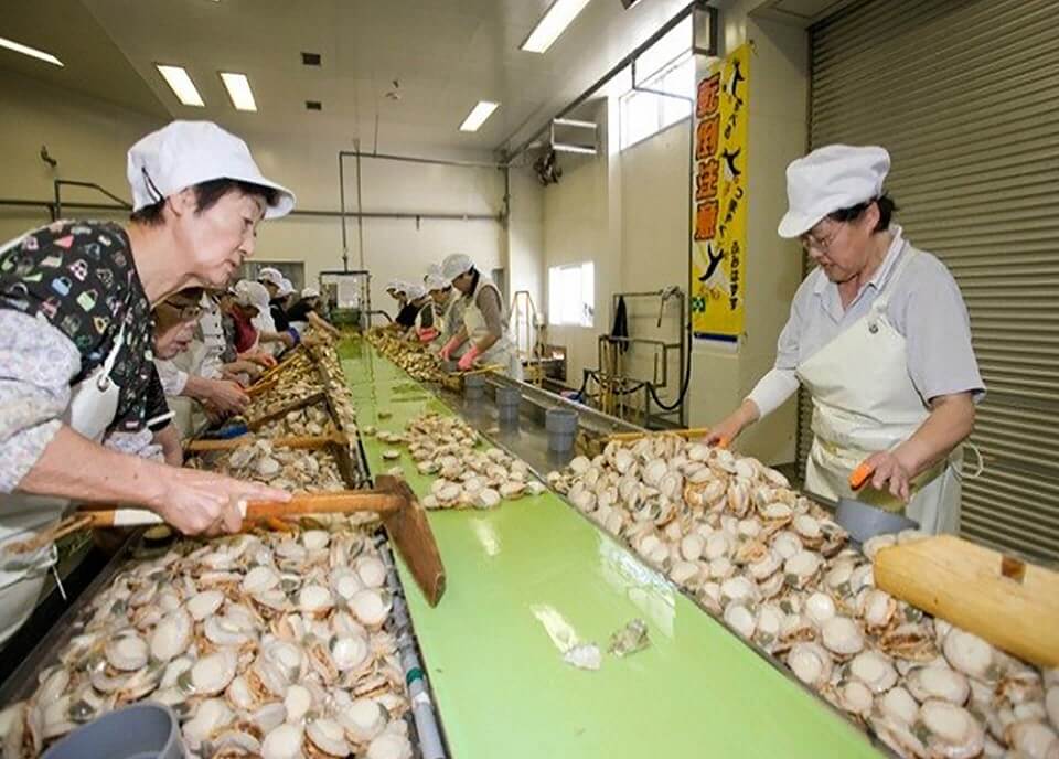 The fresh scallops are transported to the factory for processing within three hours.