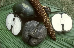 Authentic sea coconut, also known as sea coconut fruit, originates from the Seychelles, an archipelago in Africa. It is obtained by slicing the fruit of a palm tree called “double coconut” from the Aceraceae family. Sea coconuts have both male and female variations, and the female sea coconut takes about 17 years to bear fruit. Due to this lengthy growth period, sea coconut is considered a precious health product. Sea coconuts resemble regular coconuts in appearance, and their fruit contains three sections of flesh. The flesh is light, refreshing, and delicious, known for its ability to moisturize lung, and alleviate coughing by eliminating phlegm.