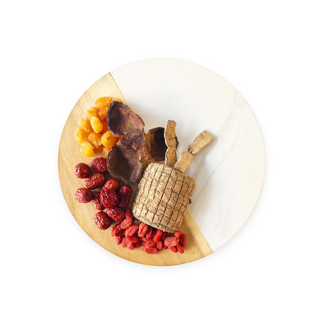 Origins|Macau, S.A.R. Ingredients| Eucommia Bark, Red Dates, Dried Tangerine Peel, Goji Berries, Longan Meat Serving Size|4